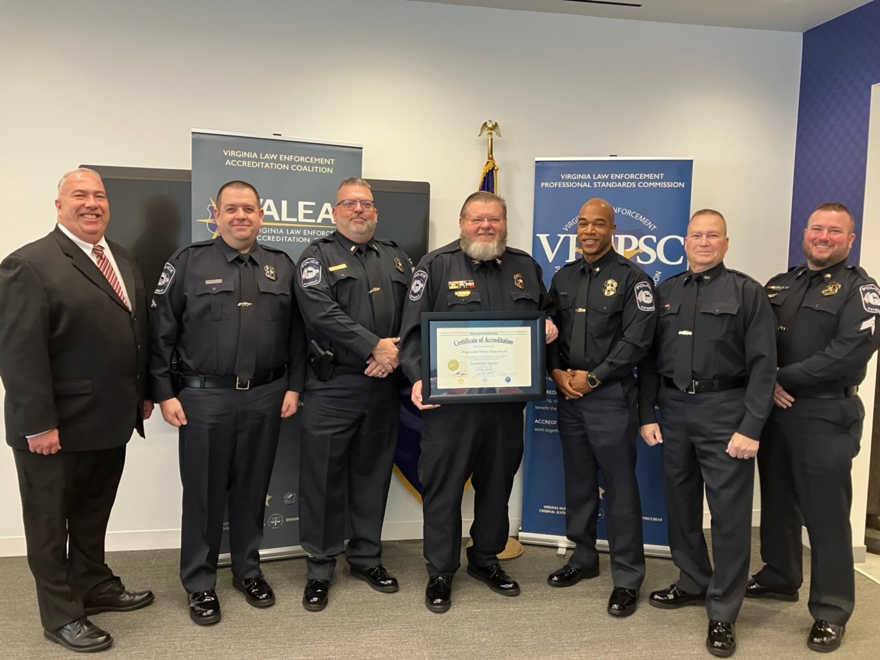 On December 4, 2025, Haymarket Police Chief Allen Sibert and members of his staff met with the review board in Charlottesville and became the 115th department in Virginia to receive agency accreditation from the Virginia Law Enforcement Professional Standards Commission, VLEPSC. Some benefits of being accredited are access to different grants, aiding in liability defense, improving operations through peer review, ensuring officer safety, increasing morale, reduction in liability insurance cost, and facilitating better community relations by aligning goals with citizen expectations, ultimately enhancing crime prevention and service.