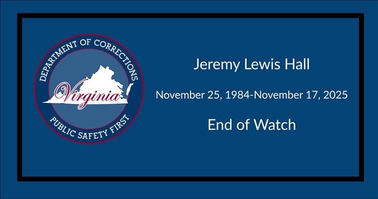 The Virginia Association of Chiefs of Police recommends that all Virginia law enforcement officers shroud their badges in honor of Virginia Corrections Officer Jeremy Lewis Hall, 40, who died following a "violent attack" by an inmate at River North Correctional Center on November 17, 2025.